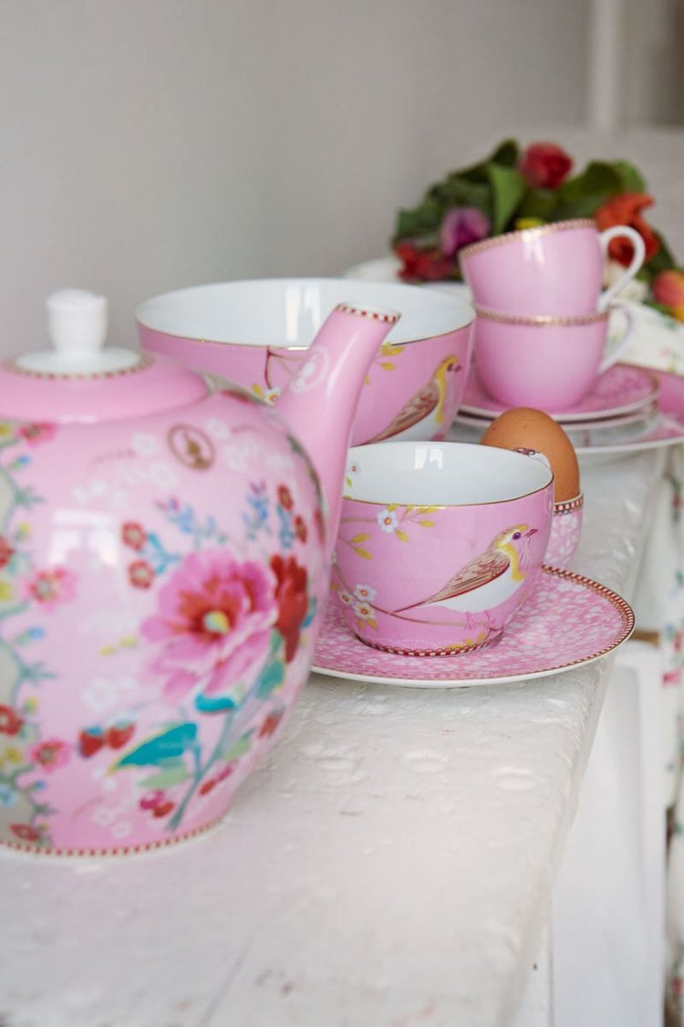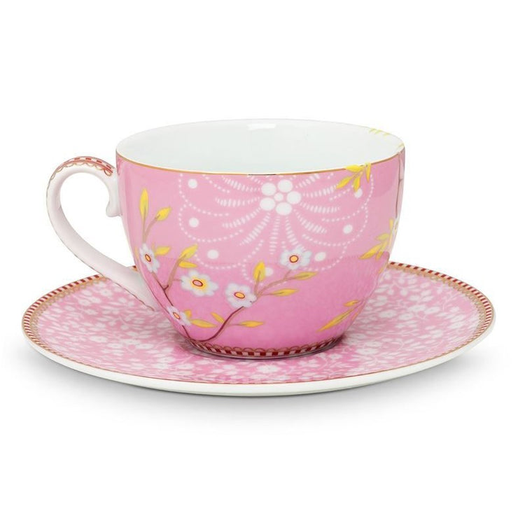 Floral Cappuccino Cup & Saucer Early Bird Pink